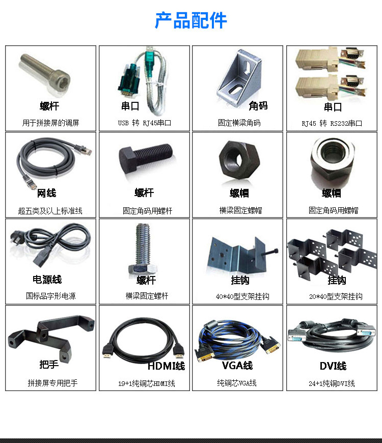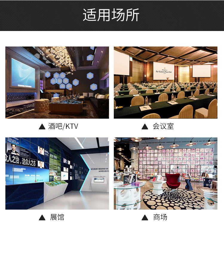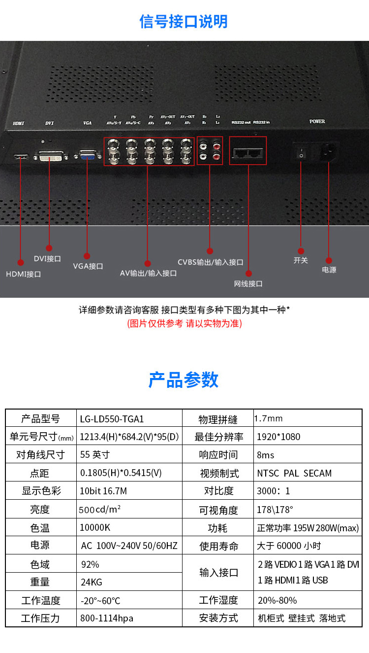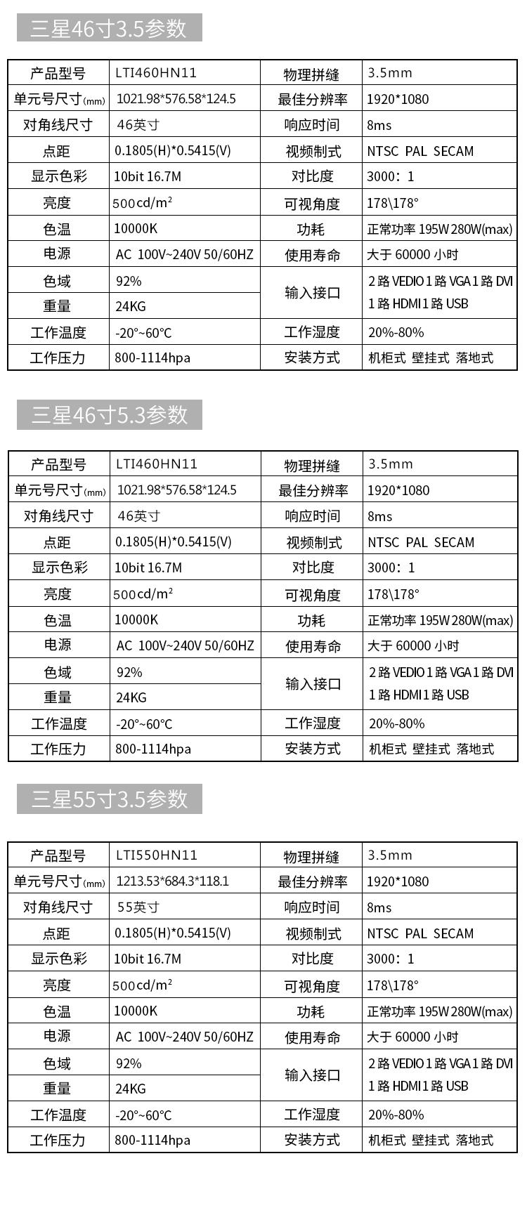 本产品主要用在视频监控、大屏广告商显、视频会议、展厅展示场景,有多种拼缝的产品,面板选用原厂原装A+三星LG京东方面板,对比度、亮度、色彩均表现优异。