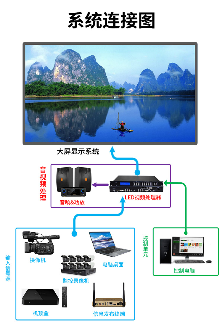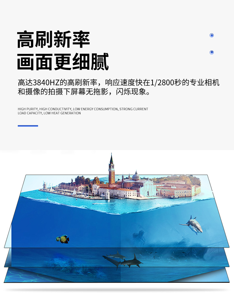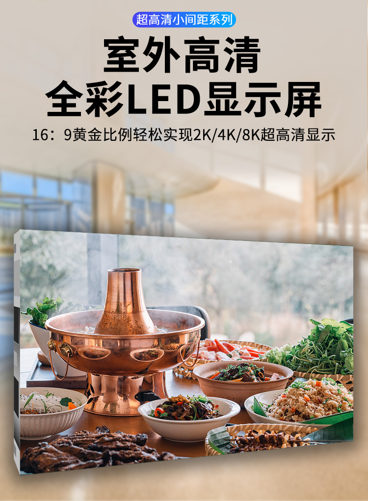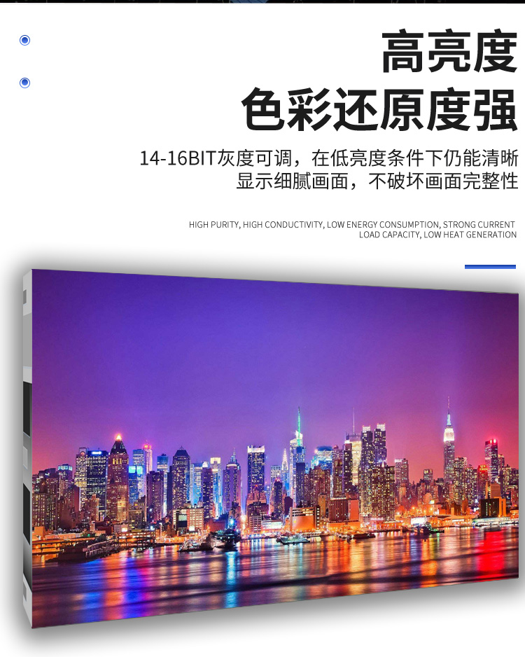 本产品用在室内指挥中心、大屏广告商显,视频会议,舞台显示,户外广告等场景,支持多种间距的灯珠模组,P1.25,P1.56,P1.667,P1.875,P2,P2.5,P3,P4,P3.81舞台租赁屏等,可以满足以上长寿命,高亮度等场合。